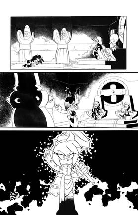 So in this case... I'm aware that 'coffin corruption' is apparently is some kind of kink genre, but as the actual request was PG13 I honestly just see it as 'evil spooky makeover' art. I've drawn it a few times before, as it's been a popular subject for Halloween. I don't know if it's necessarily the commissioner's kink or not (if it is, I don't want to know/don't need to know/don't care)... but to be honest, it's fun to draw evil versions of characters. For example Sally here is meant to be like an evil warrior queen/princess with a design that's not anymore extreme than a Power Ranger's villainess. My intent here was only to make a spooky/cool comic page for my commissioner.