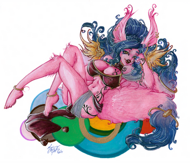 Thanks. I've been trying to branch out into more colorful pieces recently. I like the pose too, I threw in the turquoise balls at the end to force in some perspective (and add some contrast).