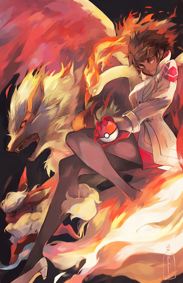 Check out Akami and Tsukiko's flamin' hot Team Valor print featuring Candela with her Moltres! What's your team?Program used: Photoshop & SAI