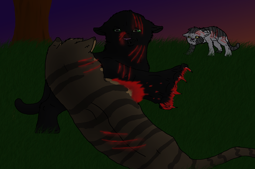 do i have to put the mature content for the blood ?btw this is the scene from warriors cat where TigerClaw kills RedTail and RavenPaw assists the scene bla bla bla, if you want to use the TC and RT desing you can but remember to credit me bla bla bla ...