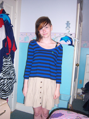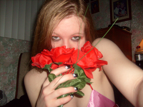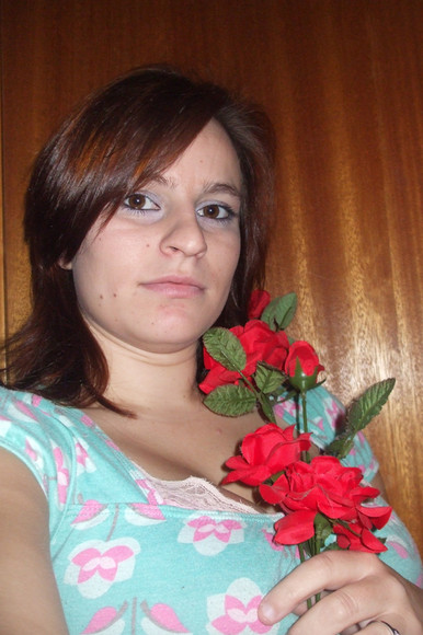 I have no idea why I'm holding flowers. Or dressed nicely. Or smiling.Oh well, at least the dress matches my eyes....