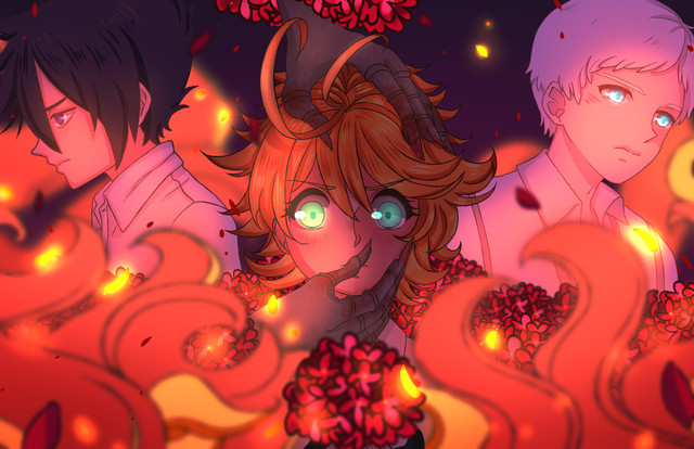#fanart #anime #blood #demon #emma #friends #glass #hug #jump #monster #neverland #norman #promised #ray #shonen #shounen #tears #tpn #weekly #weeklyshonenjump #yakusoku #ynn #mangaanimefanart #norray #thepromisedneverland #the_promised_neverland #noremma #rayemma #legravalima