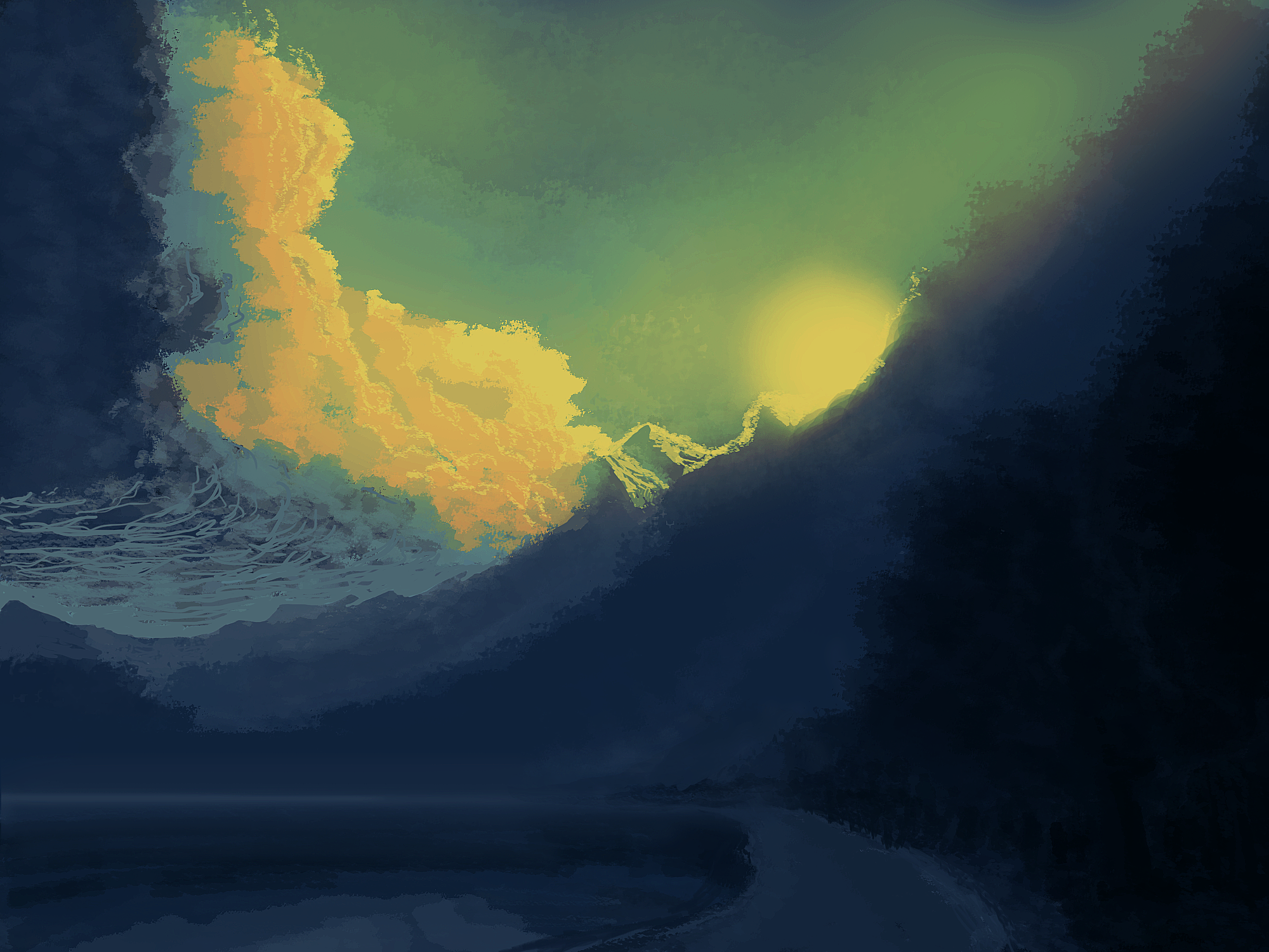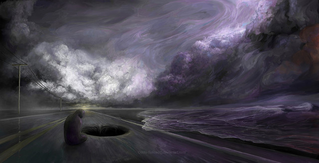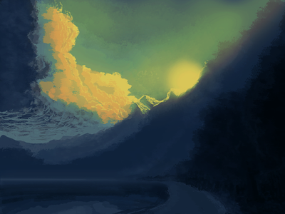 Hi! This is a very lovely piece, very powerful and the atmosphere is established well. I would like to point out some minor things that more thought could have easily remedied. It's mostly some tidbits about composition. The first thing that struck me was the very clear focal point in the center of the image. And I then proceeded to look at the boy and the log, and lastly the water and clouds on the side. The thing about focal points is that we want to make sure to plan them really well, or else the viewer will question what they are seeing. Here, I saw the boy sitting with his legs outstretched in front of him holding a fishing pole straight in front of him, the log perfectly horizontal and parallel to the horizon line. The boy's center of balance looks a little compromised in that position, and wouldn't sitting on a log while fishing for possibly many hours hurt your, uh, you know? xD The log's positioning I think was quite ingenious though. The fact that it was parallel to the horizon line lent a sense of unity to the whole picture. Next is the water; the only thing I would say is that the reflected light on the water could do to be a little bit more randomly placed and they don't all have to be same size; they can be different sizes and lengths. I think the clouds and sky were marvelously done, and I hope to see more from you in the future.