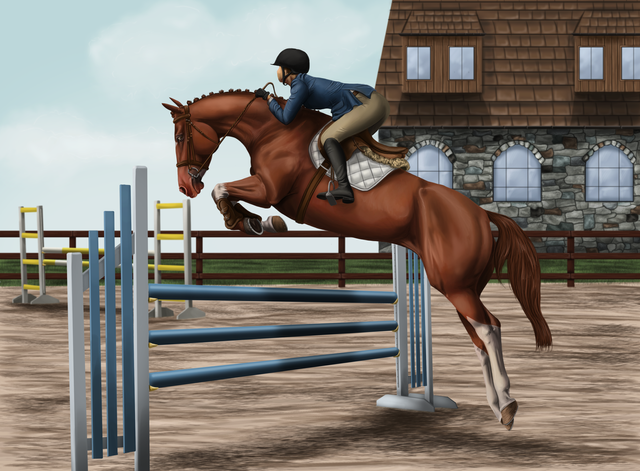 Personality: The calmest, most well-behaved stallion you could imagine. You'd swear he was a gelding. He usually competes in the jumpers, but he'll do well in the hunters on a good day. He's a bit clumsy and not very flexible, giving him a disadvantage in the hunter ring. However, he is a very powerful jumper that can clear any fence put in front of him. He's bombproof, and has quite a habit of licking anybody who comes near him.