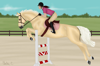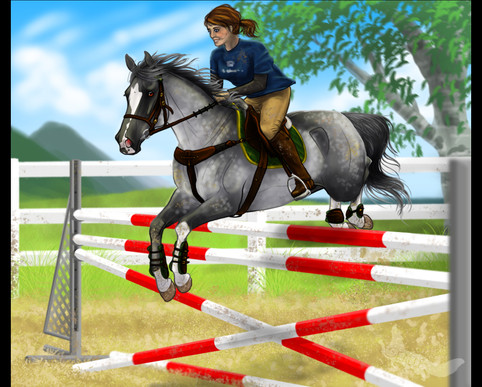 Sarasota and Hannah in the Whitaker Farms Monthly Show (may). They're competing in show jumping."What a good girl," Hannah said as Sarasota picked up the canter easily. She flew over the jumps easily, one would think she was a seasoned show horse. Hannah asked her to slow down a bit before the jump, and she listened perfectly. Β Everything Hannah asked, Sarasota responded immediately. She didn't know everything, but what she did know she executed perfectly. Everything was easy for her, no rushing, no forcing her back, no arguing. Hannah finished the course and was all smiles.