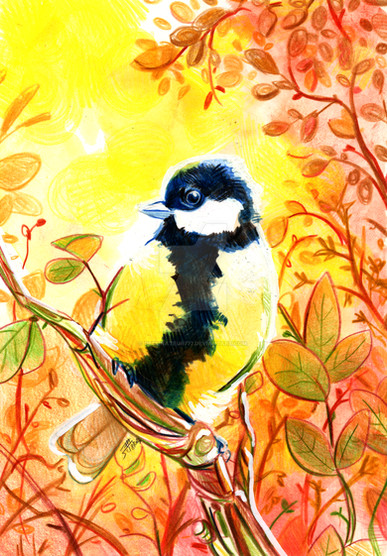 #bird #birds #greattit #nature #promarkers #tree #colouredpencils #traditionalart