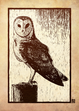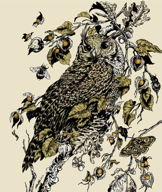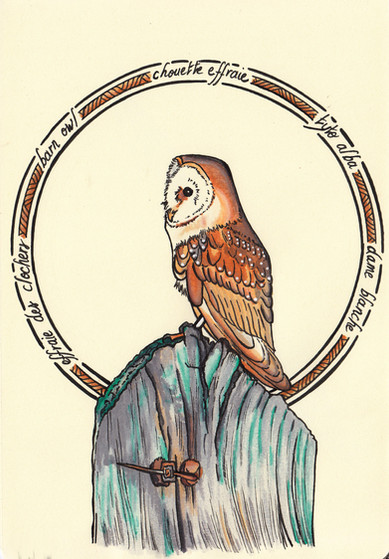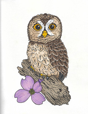 Little owl. The first of a series of 3 bird drawings.Media: Letraset promarkers, touch markers, black pen