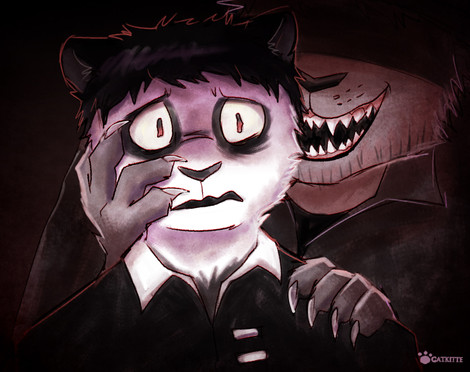 I already drew a lot of Ebone anyway so I decided to go with Panda XD basically how he binds together with Evil Panda, and occasionally it tries to "take over" or "control" him from behind his back.