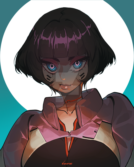 love it~ nice how there seems to be a lot of detail in the eyelashes, emphasized by other parts of her body being seemingly out of focus. a bit reminiscent of Kusanagi, perhaps ^^