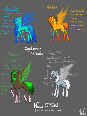Guess it would be good to say something more about Elementalists now. Well, generally they are the representation of the forces of nature. Kind like mythical gods they possess the power over water (Bliss ), fire (Faya ), earth (Garth ) and wind (Isane ). They are more or less the immortal beings created by the force that created everything, including time and space and taken the form of Galaxy Pony . They usually don't interact with mortals and are treated by them more of the old spirits or even forgotten legends. Nevertheless Elementalists are responsible for the Nature and its balance. They keep guard over the harmony of existence.