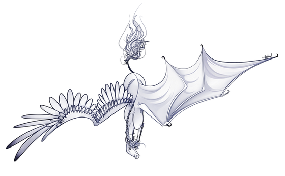 At first he was suppose to have both, but i realize i didn't draw the second after scanning it and my lazy nature say "nope! we are not fixing it!" So i decide he will indeed have only one wing! Thought it will be interesting as he didn't lost it in any way, he was just created like this even if he is supposed to be the greatest flyer in the sky ^w^~