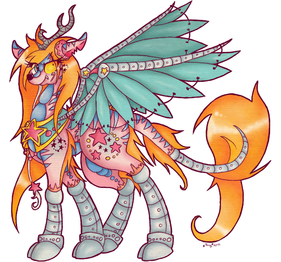 He have a lot of complexes cus of his look (the reflecting rainbow mane, bird like tail and one wing) as he constantly feel like he is not taken seriously by others (mostly Faya fault xD )