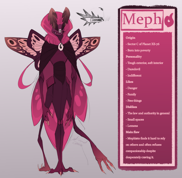 Commander in the interstellar military, his recent goal is to track down Meph and bring him to justice, however, the pink moth is proving himself to be a troublesome one. This lead Giovanni to use all sorts of nasty tactics to try and bring the criminal down, because, in his eyes, if Meph can play dirty, so can he.