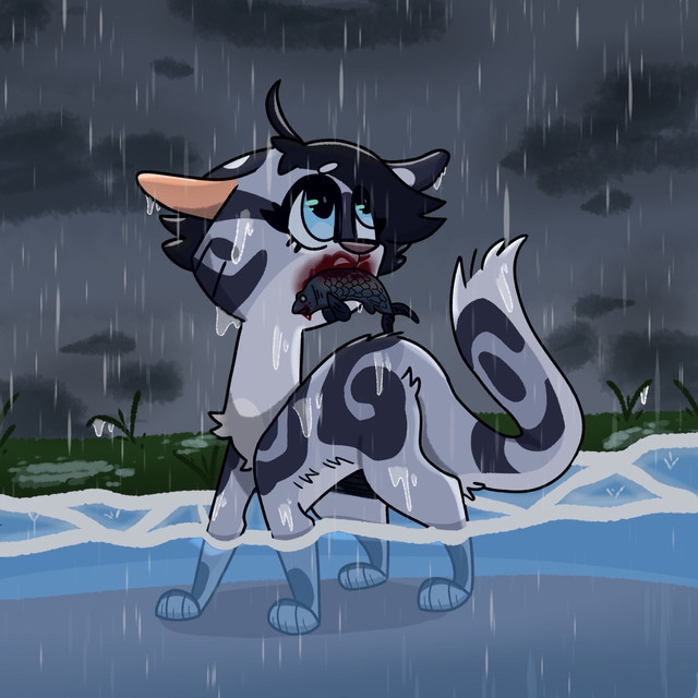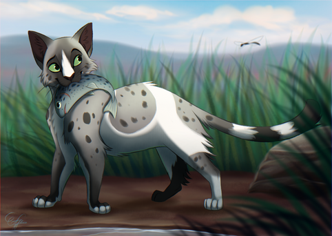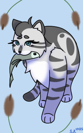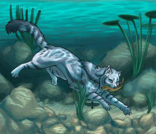Oh, this is just lovely! A very determined Silverstream finally gets the fish. I love riverclan!!