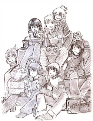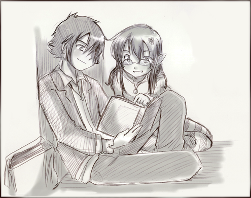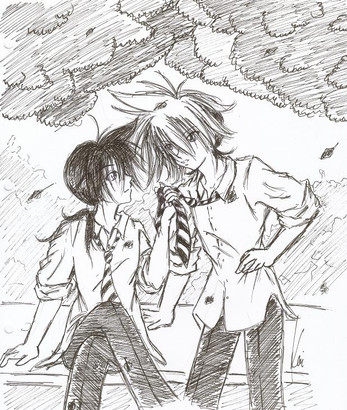 Et je commence par celui-ci, j'ai pu déjà te dire combien je l'aimais et combien ça me touchais mais je veux le redire ici!Parce que... parce que... Je ne saurais expliquer pourquoi ça me fait si plaisir de nous voir, de voir ce dessin, sur DeviantArt; c'est idiot mais ça me touche d'autant plus, c'est un endroit spécial, grâce auquel je t'ai retrouvée, et tout... Alors voir ce dessin de nous trois ici, ça me touche tout particulièrement...