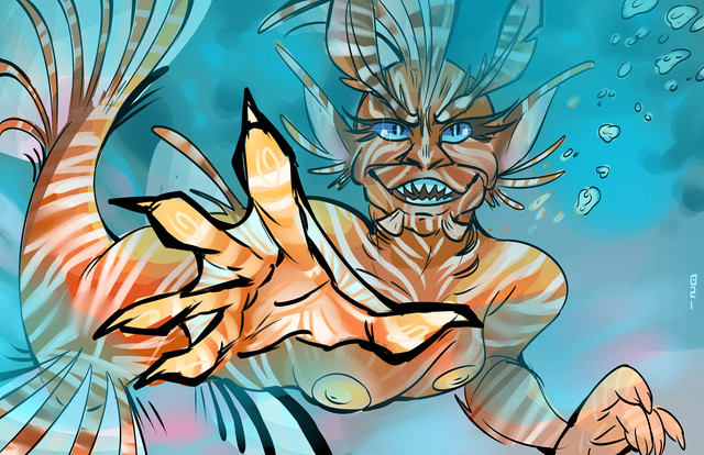 #amulet #aquatic #boy #fantasy #fins #gills #green #merfolk #merman #monster #oc #octopus #sand #seagull #seamonster #shade #squid #teeth #tentacles