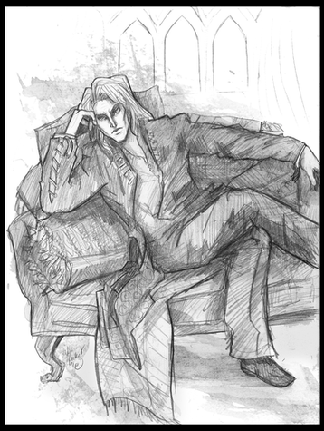 Fin's personality is way different from the rest of the princes. He is very meticulous, HATES messiness, and is all about policing his brothers' manners. In this picture, he is visiting Ainz and I. He is sitting in one of the chairs in our parlor. I always think he looks like he's our therapist, so I hope this picture reflects that. It sure took a long time to complete. Might go back and add more detail at some point, but I just wanted to be done honestly.
