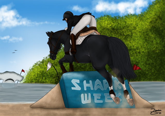 Finally, it was a calm day with no surprises or incidents. The mare or the rider or maybe both of them did get a little spooked by the whale tail obstacle, but they managed to navigate the course flawlessly. Both of them were drenched in sweat, and Jim let out a colorful array of swearing about the heat and hating the heat, but there was an undeniable smile on his face at the end of the course.
