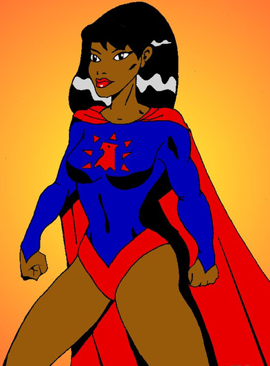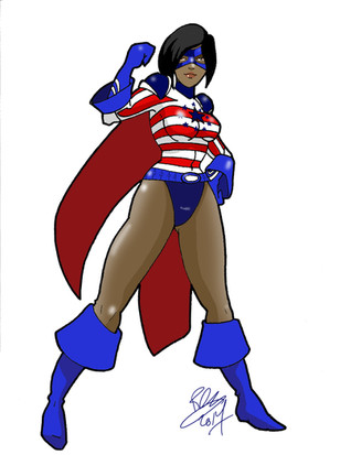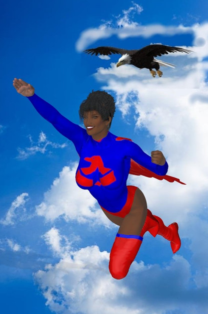 an animated style image of cattle6 superheroine Freedom's EagleRelated content