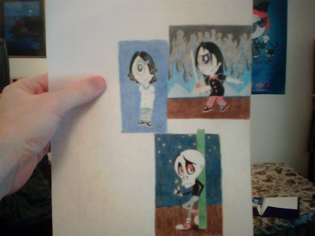 Hehe, for some reason I can't draw big pictures very well. I get all the proportions and details wrong when I draw big pictures. As long as I keep my coloured pencils sharp though, I can do all these tiny details really well!