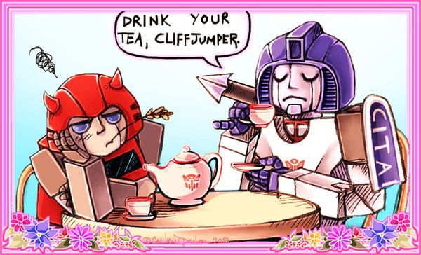 i have to say...inferno and red alert never fail to be cute, and you really bring that out here. inferno's head on red's shoulder just fills me with fuzzies. beautifully ambient colouring/lighting, and i like the dove touching down on red's hand. great pic!