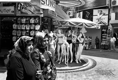 I always love to see the mass of wires/phonelines/powerlines overhead in places like this.