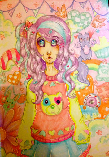 #alternative #bun #bunny #cute #decora #kawaii #me #pastel #coloredpencil #japanesestreetfashion #selfportrait #sugoi #traditionalart #fairykei