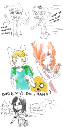 i think its cute and true,finn has over a bunch of princess and marceilene to choose from,you should do another with other characters like with finn and peebles,finn and fionna,finn and susan strong.(sorry for misspelling)Then fionna and prince gumball,fionna and marshal lee,and so on and so on.