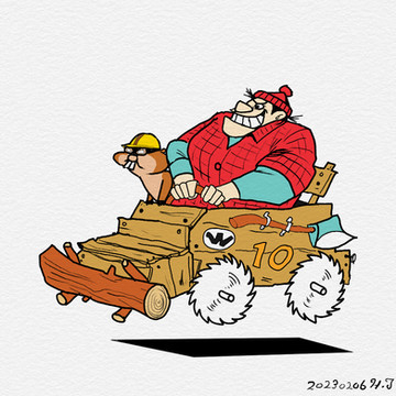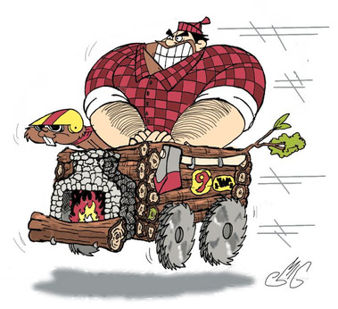 Rufus Ruffcut and Sawtooth in the Buzzwagon (Wacky Races) Hanna Barbera CartoonsRufus Lenhador e Dentes-de-Serra (Carro-Tronco) do desenho animado Corrida Maluca