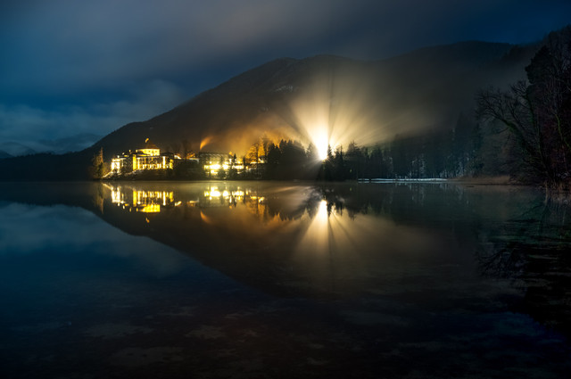 At first I was drawn in by the rich colors and the angle that you shot from. It was only on second look through I saw the shadows in the mist and the fire almost hidden behind. Nice touch, that.