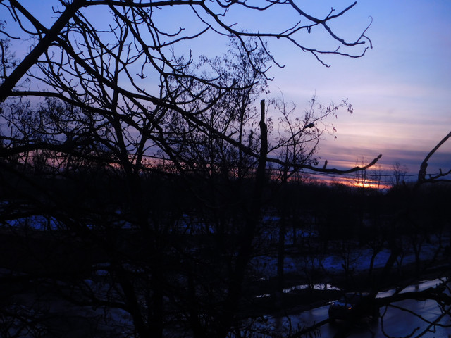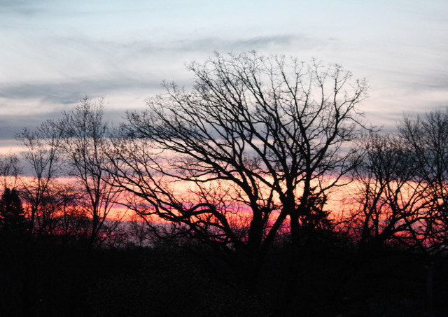 View from front porch.Not as good quality, but I really enjoyed the way the silhouette of the tree looked against the sunset d: