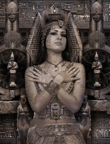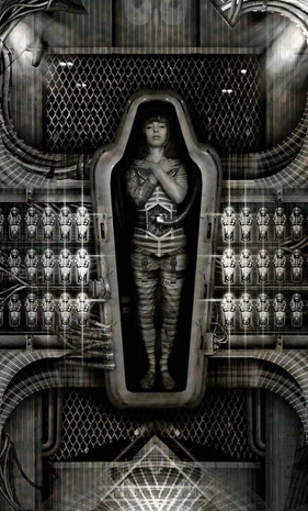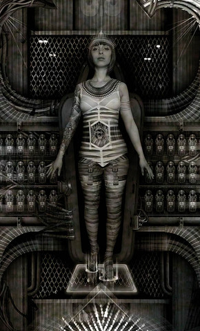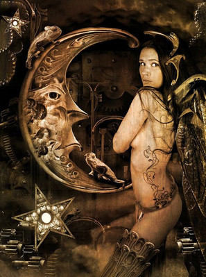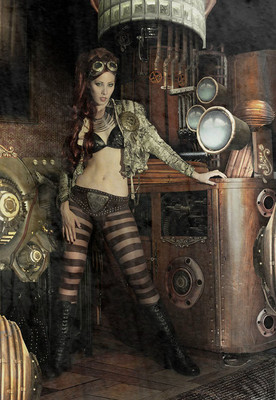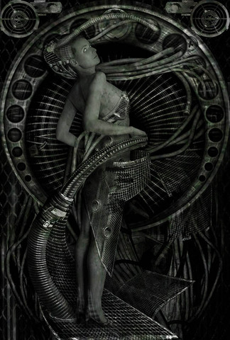 I like the overall composition an the monochromatic palette, but the tattooed arm and the other 'armor-like' accessories are very cool.