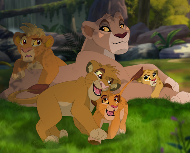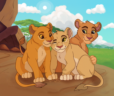 wanted to draw the kovu/kiara babies again that I designed a couple years back. Dark brown cub on the left is Amani, and the rusty one of the right WAS umoja but i decided just now that i hate that name so he's now Siyanda instead. background copied from a tlk screenshotRelated content