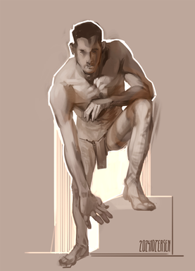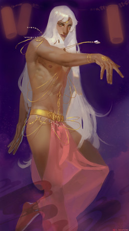 Also, I think the color palette you use is very interesting ! Love all those pink/purple tones work together and this purple glow you give to his tan skin.