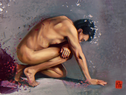 I really like how you've colored the skin, the amount of colors and tones are beautiful! Do you work digitally or traditionally? Some of your works in your gallery look digital, but like this one they have a really nice painterly quality that looks like oil paint.