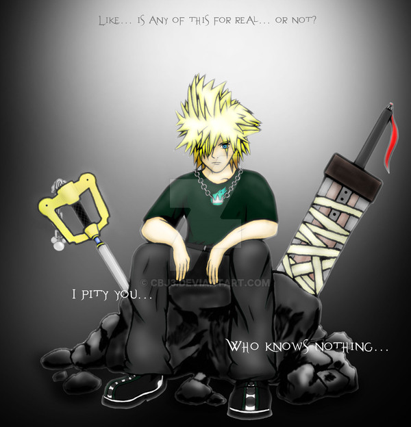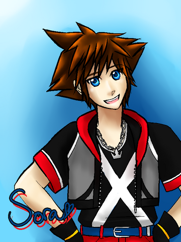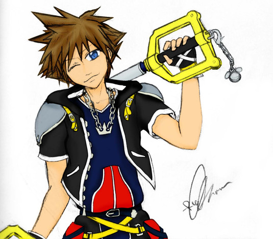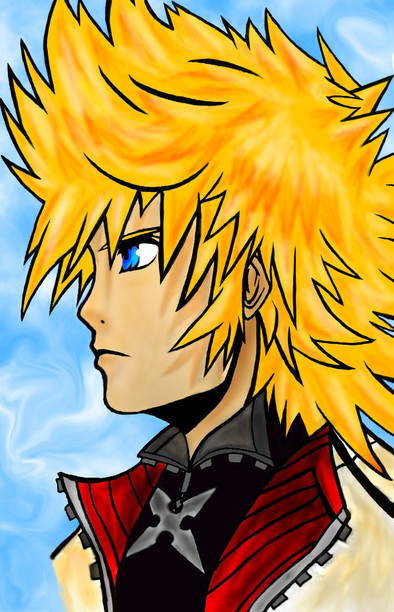Woot for coloring. This is probably my greatest drawing yet. I originally drew it up with sharpie markers and that took about a half an hour. I scanned it in and put it through photoshop.I originally copied this off of Tetusya Nomura's original wallpaper art for Re: Chain of Memories and Kh2 Final Mix. I made subtle changes to his face to make the picture kind of depict how his personality was during Chain of Memories. In my personal opinion he was more of a ditz in 2 so obviously this version of him is my favorite.