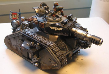 This is the anti-vehicle portion of my Warhammer 40K IG army. It's a Leman Russ armed with a Vanquisher cannon, two plasma cannons and a las-canon. It also uses the 50 point upgrade: Knight Commander Pask. He gives it BS 4, and adds one to the result on the damage table. Sometimes I give it multi melta sponsons, just to add two to the chart and watch people grimace, as the least I do is disarm themRelated content