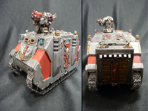 Here is the finish painted veteran Razorback for the relictors army.I airbrushed the hull boltgun, and sprayed devlan mud to soften/weather it a bit.