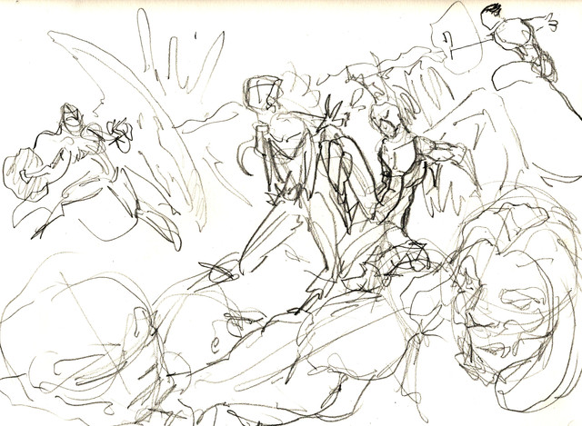 (reposted sketch) Sketch of a fight/chase flow. Trying to find something I like.Related content