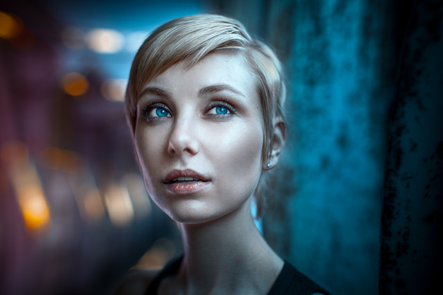What aren't you sure about? Β Really like the shot. Great light, Β great background and color. Β Her quizzical expression is certainly inviting enough to make me look at the photo for an extended period. Β She's beautiful. Β