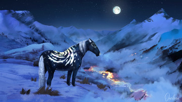 #digitalart #digitalpainting #horse #originalcharacter #magic #forest #pony #spirit #adoptables #bluetopaz #buddy #candelabra #equine #horses #maplesyrup #harpg #horseequine #equineartist #harpghorse #snowytreecricket