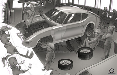I realize you must sketch a lot to get this level of prowess "making it real" in sketches. The perspective, the shading values, the relation of the subjects to their surroundings...