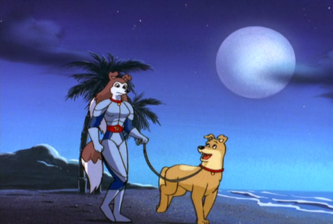 Now, I wasn't sure if the writers actually had put suits in the Sub-Rover, and we didn't have an episode with any of the Rovers Scuba-Diving (closest being this piece by ; Scuba Diving Colleen ) or it's more than likely they'd've been given RR issue swimming shorts like here; Not a Tennisball , swimming trucks and bikinis, but they had to keep on their uniform belt (on which would be attached a large knife as a basic weapon) and RR collars.