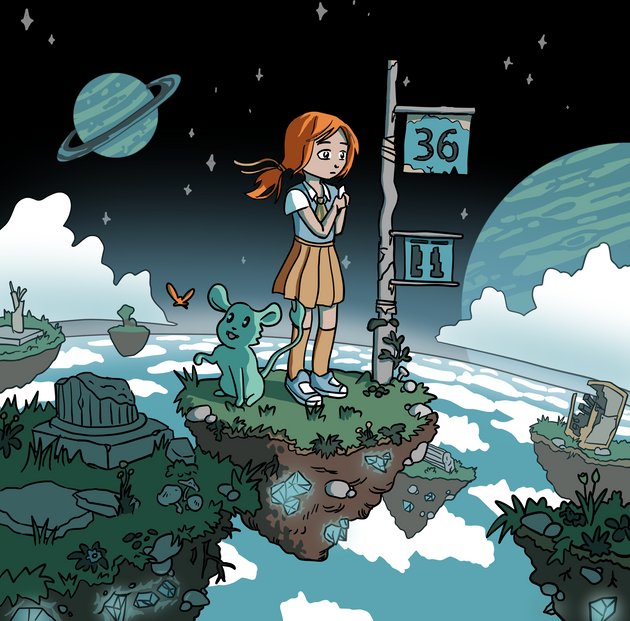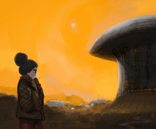 #bus #girl #ink #orange #robot #sky #stop #stuff #thing