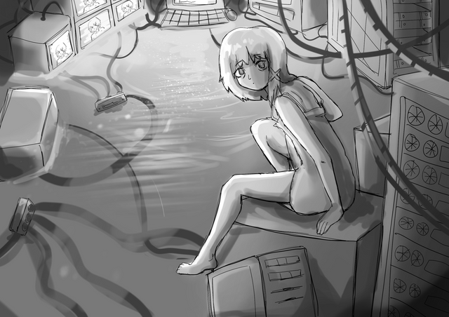 #blue #cat #girl #ink #night #screen #spider #web #computer