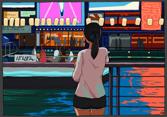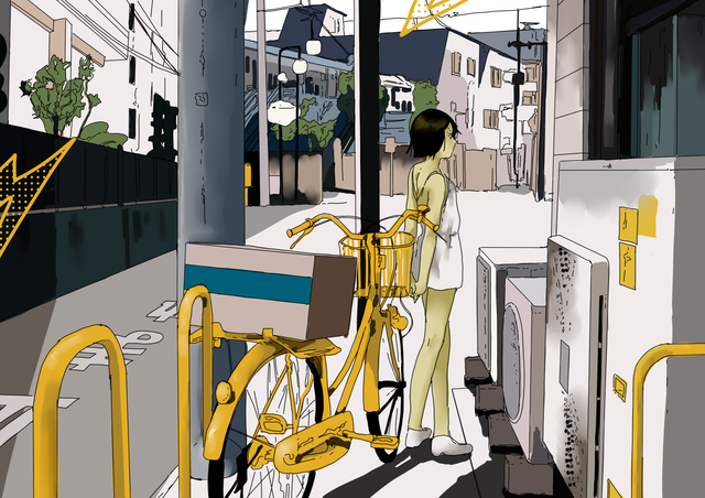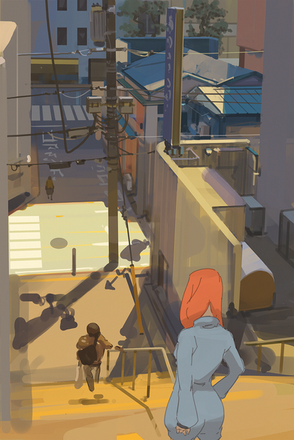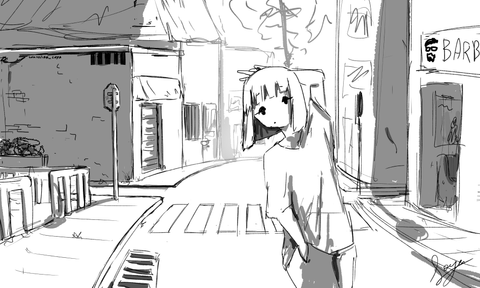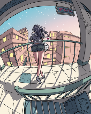 #city #day #drawing #girl #ink #shadow #stuff #sun #urban