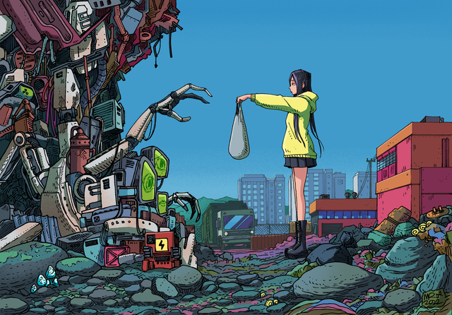 No problem! ^^ Iβm curious to what the lore is in this picture. Is that giant robot going to attack that woman?