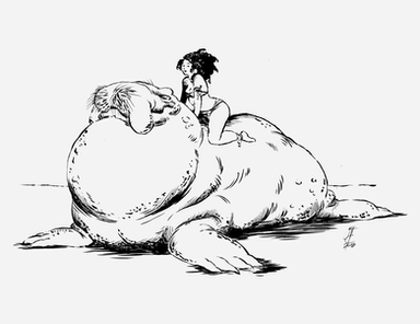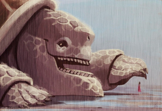 She thinks the rocks that she's climbed onto look like the shell of a giant tortoise.Then she starts imagining/ dreaming that she's riding on the back of tortoise.