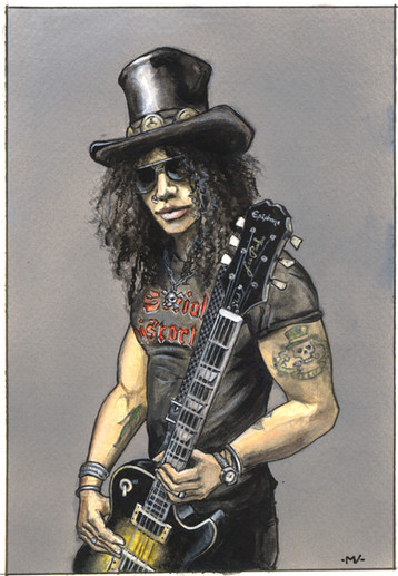 Slash from guns n roses with color les paul.If you like painting of rock musicians, please also check out my ozzy osbourne painting, Axl rose painting, and GNR logo painting