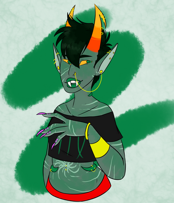 Equius was a fun one because, personality-wise, I can’t really seem him doing graffiti. At least not without a lot of complaining and someone having to order him to do it....but then he doesn’t even get very far because he crushes the can of spray paint immediately and just winds up making a mess.
